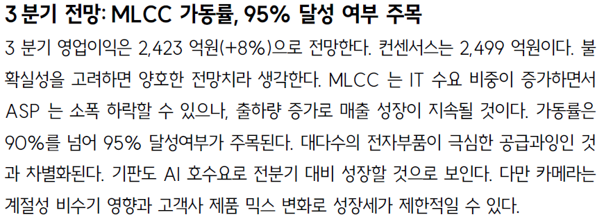 처음 매수할 때 재무제표에서 가동율 확인하고 MLCC가 들어가는 제품 CHECK