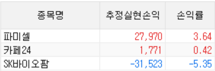SK 바이오팜은 3월에 물린 이후 분할 손절로 대응했다가 5주 남은 거 오늘 전액 청산