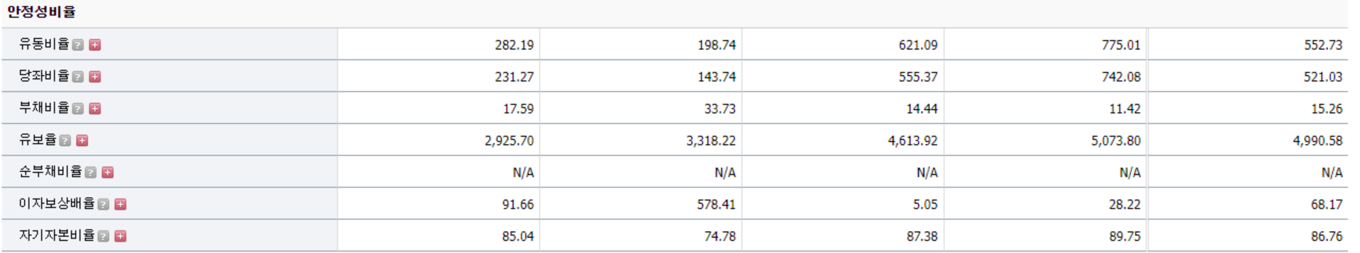 회사의 부채비율 그리고 유보율 좋음